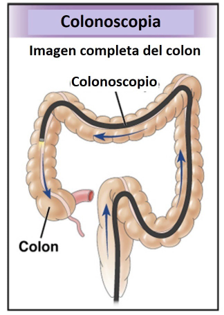 La colonoscopia es un estudio que permite ver el interior del colon o intestino grueso. En este procedimiento el médico especialista introducirá vía rectal el colonoscopio desde el inicio hasta el fin del colon con la finalidad de obtener video e imagen en tiempo real de las condiciones de este órgano y en caso necesario tomar muestras (biopsias). El objetivo de la colonoscopia es detectar el cáncer de colon en forma oportuna o diagnosticar padecimientos que producen síntomas a nivel intestinal asi como quitar pólipos que puedan significar un riesgo en el futuro.